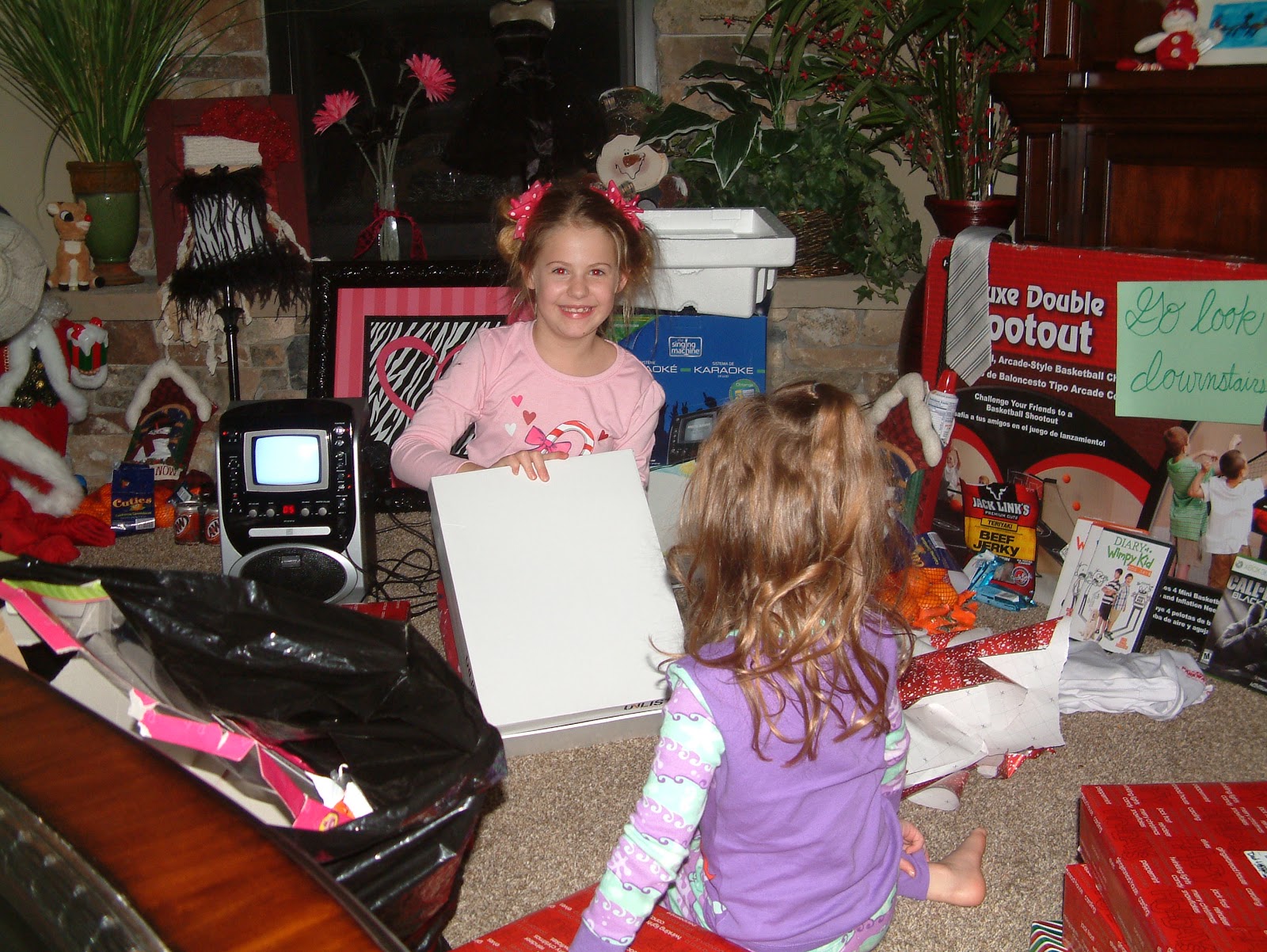 Santa brought Mckell a Karioke machine, a Taylor Swift cd, a picture, lamp, flowers, etc for her new room, movies, art supplies, and a coat.